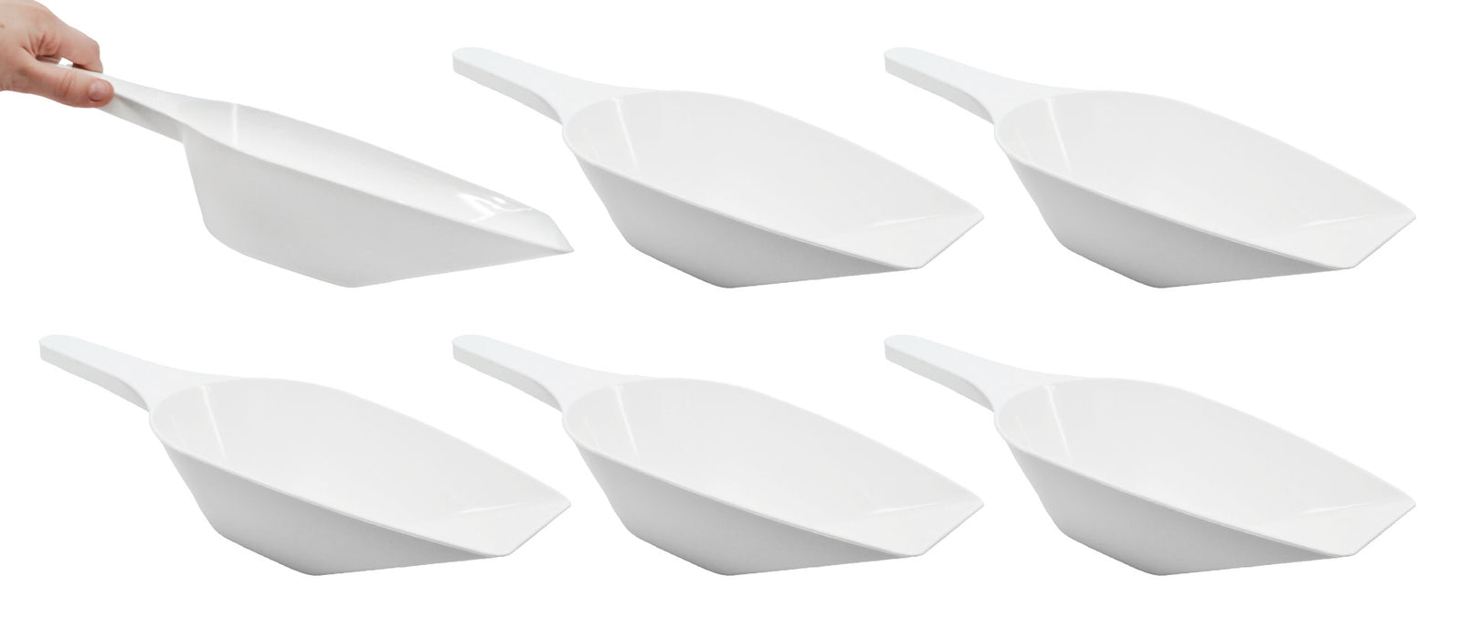 Here is the corrected text: This polypropylene scoop is made of high-quality, heat- and chemical-resistant plastic. It features a 1000ml capacity and has a flat bottom, allowing it to rest upright for weighing and filling. Designed for use in professional laboratories, this scoop is also an ideal choice for science classrooms, household use, restaurants, and kitchens. It's great for general scooping, transferring, measuring, and weighing. Manufactured by Eisco Labs, this product is proudly made using state-of-the-art equipment and follows the highest standards of quality control. Each product is carefully designed by a team of laboratory professionals and experienced engineers with quality and durability in mind. This pack of 6 high-quality, polypropylene plastic weighing scoops has a 1000ml (33.8oz) capacity. The capacity is marked on the scoop handle for easy identification. Autoclavable and dishwasher safe for easy cleaning, the handle is approximately 5.5" long, while the scoop measures 10" long, 5.75" wide, and 3" deep.