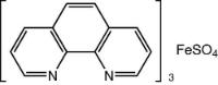 1,10-Phenanthroline iron (II) sulfate^ 0.025M in H_x001A_ O.Liquid,CAUTION: May be harmful if swallowed,50g,250g.