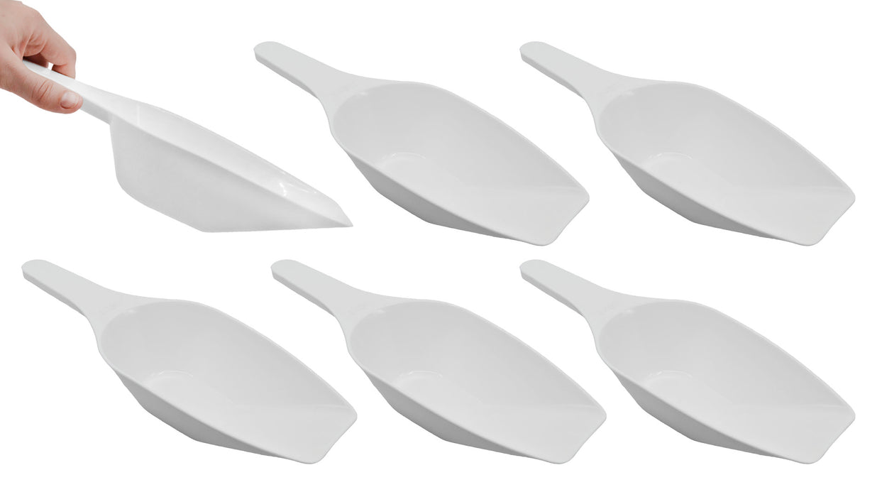 Here is the corrected text: This polypropylene scoop is made of high-quality, heat- and chemical-resistant plastic. With a 500ml capacity, it features a flat bottom that allows it to rest upright for weighing and filling. Designed for use in professional laboratories, but also ideal for science classrooms and household use, this scoop is great for restaurants and kitchens, as well as general scooping, transferring, measuring, and weighing. Eisco Labs proudly manufactures its own products using state-of-the-art equipment and following the highest standards of quality control. Each product is carefully designed by a team of laboratory professionals and experienced engineers with quality and durability in mind. This pack of 6 high-quality polypropylene plastic weighing scoops has a capacity marked on the scoop handle for easy identification. The scoops are autoclavable and dishwasher safe for easy cleaning. The handle is approximately 4.75" long, while the scoop itself measures 7.5" long, 4.25" wide, and 2.25" deep.