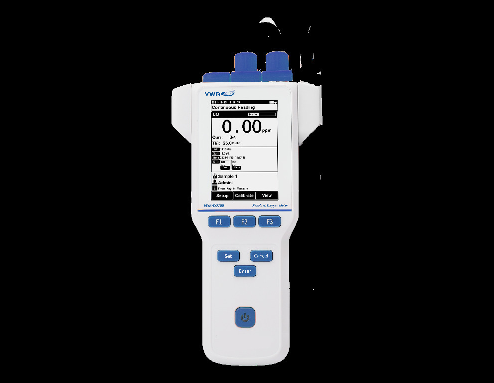 The VWR-DO700 meter provide accurate and reliable measurements of dissolved oxygen concentration and dissolved oxygen saturation., The easy to use VWR-DO700 portable meters provide accurate dissolved oxygen measurements for accurate water quality testing. The large, backlit LCD display allows results to easily be viewed during operation. Easily transport the meter and accessories with the included carrying case., 04_BodyText: Three-year meter warranty., 02_BulletPoint: High resolution LCD display (3.5") | Air-saturated water or zero oxygen calibration capabilities | IP 65 waterproof | Automatic or manual temperature compensation capabilities | Auto-read, timed-read, and continuous-read measurement options | Data capacity of 500 sets for each parameter (GLP-compliant) | Rechargeable battery | Auto barometric pressure compensation, 11_Delivery: All meters include electrode holders (2), meter silicone rubber case, carrying case and hand strap., The VWR-DO700 meter provide accurate and reliable measurements of dissolved oxygen concentration and dissolved oxygen saturation., The easy to use VWR-DO700 portable meters provide accurate dissolved oxygen measurements for accurate water quality testing. The large, backlit LCD display allows results to easily be viewed during operation. Easily transport the meter and accessories with the included carrying case., 04_BodyText: Three-year meter warranty., 02_BulletPoint: High resolution LCD display (3.5") | Air-saturated water or zero oxygen calibration capabilities | IP 65 waterproof | Automatic or manual temperature compensation capabilities | Auto-read, timed-read, and continuous-read measurement options | Data capacity of 500 sets for each parameter (GLP-compliant) | Rechargeable battery | Auto barometric pressure compensation, 11_Delivery: All meters include electrode holders (2), meter silicone rubber case, carrying case and hand strap., VWR-DO700 meter with DO1 polarographic DO electrode, zero oxygen calibration solution, DO electrolyte, and 3 pieces electrode membrane cover, Cat. No.: 77618-930, The VWR-DO700 meter provide accurate and reliable measurements of dissolved oxygen concentration and dissolved oxygen saturation., The easy to use VWR-DO700 portable meters provide accurate dissolved oxygen measurements for accurate water quality testing. The large, backlit LCD display allows results to easily be viewed during operation. Easily transport the meter and accessories with the included carrying case., 04_BodyText: Three-year meter warranty., 02_BulletPoint: High resolution LCD display (3.5") | Air-saturated water or zero oxygen calibration capabilities | IP 65 waterproof | Automatic or manual temperature compensation capabilities | Auto-read, timed-read, and continuous-read measurement options | Data capacity of 500 sets for each parameter (GLP-compliant) | Rechargeable battery | Auto barometric pressure compensation, 11_Delivery: All meters include electrode holders (2), meter silicone rubber case, carrying case and hand strap., VWR-DO700 meter, no electrode, Cat. No.: 77618-928