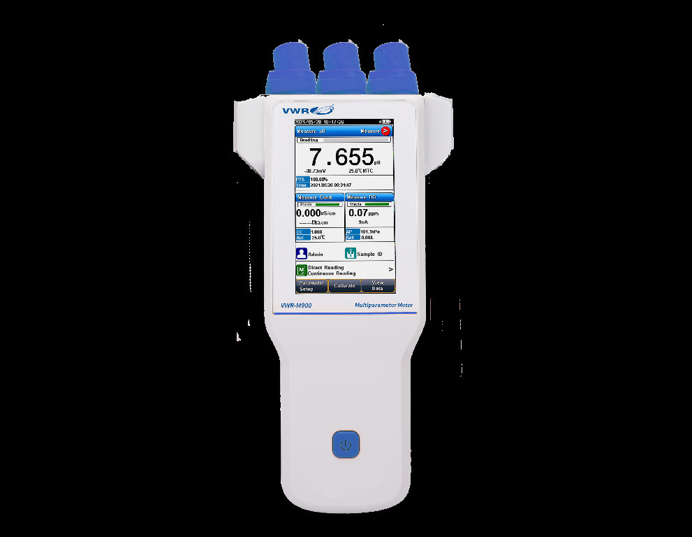 The VWR-M900 portable multi-parameter meter provides accurate and reliable measurements of pH, conductivity, ion, and dissolved oxygen., The easy to use VWR-M900 portable meters provide versatility in measurement parameters in a compact, easy to use meter. The intelligent operation system provides features including user management, calibration management, electrode management, method management, and many other advanced capabilities. The carrying case allows for easy transport of the meter and accessories., 02_BulletPoint: High resolution color touch display (4.3") | Eight-point calibration for pH with selectable pH buffer group | Built-in ion methods including F⁻, NH⁴⁺ and NA⁺ | IP65 waterproof | Automatic or manual temperature compensation capabilities | Auto-read, timed-read, and continuous-read measurement options | Five-point conductivity calibration with standard recognition | Dissolved oxygen calibration supports air-saturated water or zero oxygen | Ability to save 1000 data sets for each parameter (GLP-compliant) | Rechargeable battery, 11_Delivery: All meters include carrying case, electrode holders (2), meter silicone rubber case, touch screen pen, and hand strap., 10_Ordering: Three-year meter warranty. For application specific recommendations, please reference 'VWR® Electrode Selection Guide' located in the Related Information section., VWR-M900 meter includes PH31 pH electrode, pH buffers, EC01 cond electrode k=1, cond standard, DO1 polarographic DO electrode, zero oxygen cal sln, DO electrolyte, and 3 pcs electrode membrane cover, Cat. No.: 77619-116, The VWR-M900 portable multi-parameter meter provides accurate and reliable measurements of pH, conductivity, ion, and dissolved oxygen., The easy to use VWR-M900 portable meters provide versatility in measurement parameters in a compact, easy to use meter. The intelligent operation system provides features including user management, calibration management, electrode management, method management, and many other advanced capabilities. The carrying case allows for easy transport of the meter and accessories., 02_BulletPoint: High resolution color touch display (4.3") | Eight-point calibration for pH with selectable pH buffer group | Built-in ion methods including F⁻, NH⁴⁺ and NA⁺ | IP65 waterproof | Automatic or manual temperature compensation capabilities | Auto-read, timed-read, and continuous-read measurement options | Five-point conductivity calibration with standard recognition | Dissolved oxygen calibration supports air-saturated water or zero oxygen | Ability to save 1000 data sets for each parameter (GLP-compliant) | Rechargeable battery, 11_Delivery: All meters include carrying case, electrode holders (2), meter silicone rubber case, touch screen pen, and hand strap., 10_Ordering: Three-year meter warranty. For application specific recommendations, please reference 'VWR® Electrode Selection Guide' located in the Related Information section., VWR-M900 meter includes PH31 pH electrode, pH buffers 50 ml bottles, EC01 cond electrode k=1, and conductivity standard 50 ml bottle, Cat. No.: 77619-114, The VWR-M900 portable multi-parameter meter provides accurate and reliable measurements of pH, conductivity, ion, and dissolved oxygen., The easy to use VWR-M900 portable meters provide versatility in measurement parameters in a compact, easy to use meter. The intelligent operation system provides features including user management, calibration management, electrode management, method management, and many other advanced capabilities. The carrying case allows for easy transport of the meter and accessories., 02_BulletPoint: High resolution color touch display (4.3") | Eight-point calibration for pH with selectable pH buffer group | Built-in ion methods including F⁻, NH⁴⁺ and NA⁺ | IP65 waterproof | Automatic or manual temperature compensation capabilities | Auto-read, timed-read, and continuous-read measurement options | Five-point conductivity calibration with standard recognition | Dissolved oxygen calibration supports air-saturated water or zero oxygen | Ability to save 1000 data sets for each parameter (GLP-compliant) | Rechargeable battery, 11_Delivery: All meters include carrying case, electrode holders (2), meter silicone rubber case, touch screen pen, and hand strap., 10_Ordering: Three-year meter warranty. For application specific recommendations, please reference 'VWR® Electrode Selection Guide' located in the Related Information section., VWR-M900 meter includes PH31 pH electrode and pH buffers (4.01, 7.00, 10.01) 50 ml bottles, Cat. No.: 77619-112, The VWR-M900 portable multi-parameter meter provides accurate and reliable measurements of pH, conductivity, ion, and dissolved oxygen., The easy to use VWR-M900 portable meters provide versatility in measurement parameters in a compact, easy to use meter. The intelligent operation system provides features including user management, calibration management, electrode management, method management, and many other advanced capabilities. The carrying case allows for easy transport of the meter and accessories., 02_BulletPoint: High resolution color touch display (4.3") | Eight-point calibration for pH with selectable pH buffer group | Built-in ion methods including F⁻, NH⁴⁺ and NA⁺ | IP65 waterproof | Automatic or manual temperature compensation capabilities | Auto-read, timed-read, and continuous-read measurement options | Five-point conductivity calibration with standard recognition | Dissolved oxygen calibration supports air-saturated water or zero oxygen | Ability to save 1000 data sets for each parameter (GLP-compliant) | Rechargeable battery, 11_Delivery: All meters include carrying case, electrode holders (2), meter silicone rubber case, touch screen pen, and hand strap., 10_Ordering: Three-year meter warranty. For application specific recommendations, please reference 'VWR® Electrode Selection Guide' located in the Related Information s