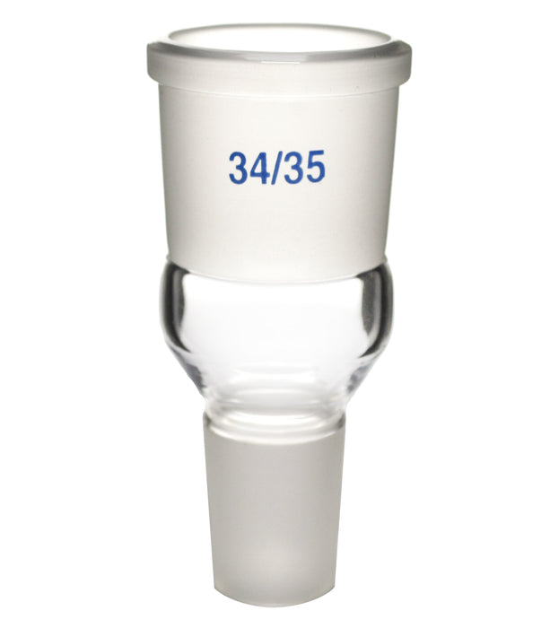 This Expansion Adapter can be used to connect lab equipment with different size joints. Made from high quality, heavy duty borosilicate glass. Socket size 34/35. Cone size 24/29. Overall length of 3.5" .