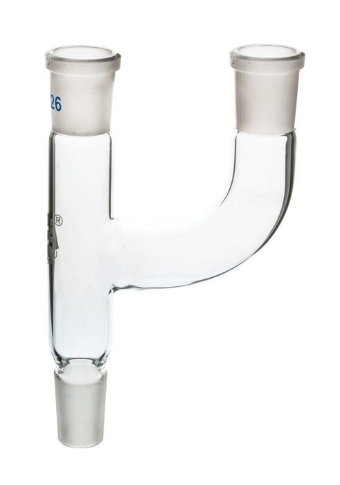 This Multiple Adapter can be used to connect lab equipment with different size joints. Made from high quality, heavy duty borosilicate glass. Socket size: 24/29. Cone size: 34/35. Measures approximately 6.5" tall, 3.5" in total width.