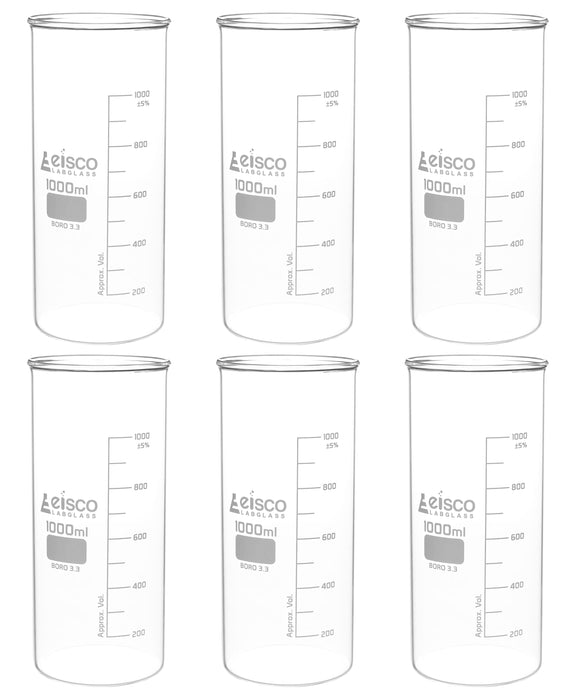 Beaker Tall Form without Spout 1000ml, Pack of 6