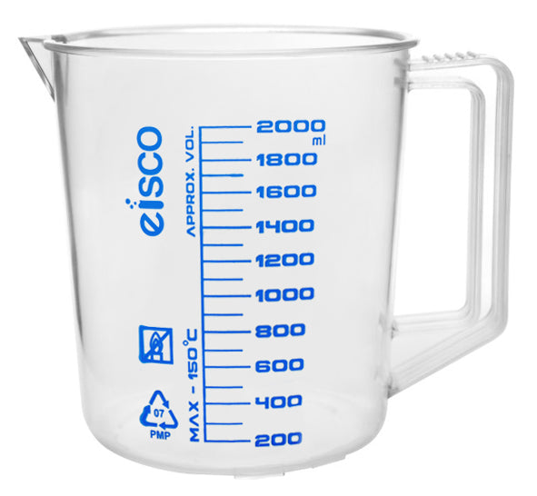 INDUSTRIAL QUALITY || 2000ml measuring jug made of high quality TPX plastic. Eisco Labs proudly manufactures its own products, using only the highest grade, raw materials to ensure that they can withstand use in even the toughest laboratory environments SUPERIOR DURABILITY || Can withstand temperatures up to 145°C. Autoclave, microwave and dishwasher safe CHEMICAL RESISTANT || Superior chemical durability. Excellent resistance to strong acids, alcohols and bases EXCELLENT OPTICAL CLARITY || Measuring jug features easy to read, screen printed graduations and excellent optical clarity GREAT FOR PROFESSIONAL LABORATORIES, CLASSROOMS & HOUSEHOLD || Designed for use in professional laboratories, but is an ideal choice for science classrooms and household use