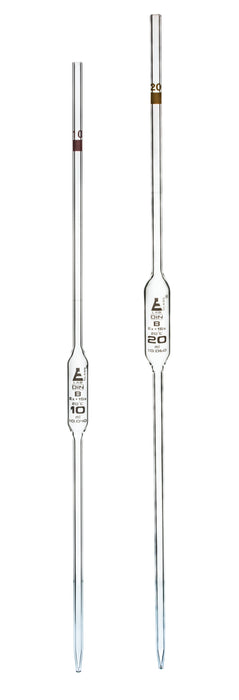 Ideal for volumetric pipettes, this 50ml pipette bulb is made of high-quality borosilicate glass and features a "Class B" certification. The 50ml measurement is clearly painted on the bulb for easy identification. Eisco Labs' borosilicate glass boasts excellent heat tolerances: a strain point of 515°C, an annealing point of 565°C, and a softening point of 820°C.
