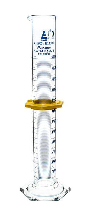 Class A Glass Graduated Cylinders, ASTM, Glass Graduated Cylinders feature a hexagonal base, printed graduations, and spout., Each