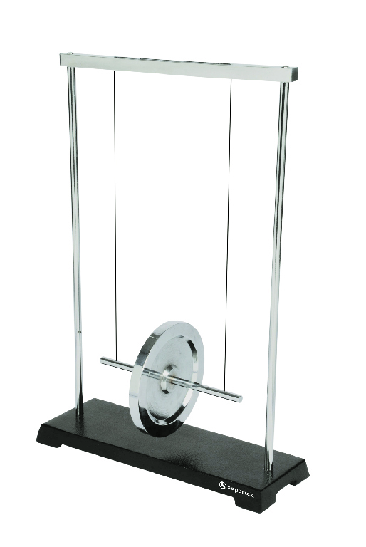 A Classic!, Useful for demonstrating momentum, conservation of energy and torque, this apparatus is basically a large flywheel suspended by two strong cords. | The cords are wound around the shaft of the wheel and then released. The wheel will unwind as it falls but will wind itself back up as the momentum carries the wheel upward in the opposite direction. | This oscillation process will continue for several moments gradually coming to a stop as the wheel slowly loses momentum and travels less each time. Also makes a very cool table top sculpture., 02_BulletPoint: Includes instructions, A Classic!, Useful for demonstrating momentum, conservation of energy and torque, this apparatus is basically a large flywheel suspended by two strong cords. | The cords are wound around the shaft of the wheel and then released. The wheel will unwind as it falls but will wind itself back up as the momentum carries the wheel upward in the opposite direction. | This oscillation process will continue for several moments gradually coming to a stop as the wheel slowly loses momentum and travels less each time. Also makes a very cool table top sculpture., 02_BulletPoint: Includes instructions, Maxwell's Wheel, Cat. No.: 470149-068