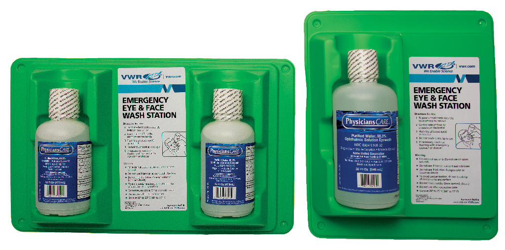 VWR® eyewash stations are wall-mountable, providing quick access for emergencies., The stations are configured to hold either one or two bottles, available in 16 oz., 04_BodyText: PhysiciansCare sterile isotonic buffered eyewash solution helps to clear eyes of foreign material such as dust, pollen, and chemicals, and to relieve itching and burning of the eyes and skin. The plastic squeeze bottle with tear-off top helps create a fluid stream to direct the solution into the affected areas., 05_BodyText: For solution refills, please see items 76049-014 (16 oz.) and 76049-016 (32 oz.)., 02_BulletPoint: Wall-mountable stations in single or double configurations | 16 or 32 oz. bottle options | Includes Physicians Care eyewash solution, Eyewash station, single 32 oz. bottle, Dimensions: 11.5x4x15", Cat. No.: 76049-030, VWR® eyewash stations are wall-mountable, providing quick access for emergencies., The stations are configured to hold either one or two bottles, available in 16 oz., 04_BodyText: PhysiciansCare sterile isotonic buffered eyewash solution helps to clear eyes of foreign material such as dust, pollen, and chemicals, and to relieve itching and burning of the eyes and skin. The plastic squeeze bottle with tear-off top helps create a fluid stream to direct the solution into the affected areas., 05_BodyText: For solution refills, please see items 76049-014 (16 oz.) and 76049-016 (32 oz.)., 02_BulletPoint: Wall-mountable stations in single or double configurations | 16 or 32 oz. bottle options | Includes Physicians Care eyewash solution, Eyewash station, double 16 oz. bottles, Dimensions: 17.5x4x11", Cat. No.: 76049-028, VWR® eyewash stations are wall-mountable, providing quick access for emergencies., The stations are configured to hold either one or two bottles, available in 16 oz., 04_BodyText: PhysiciansCare sterile isotonic buffered eyewash solution helps to clear eyes of foreign material such as dust, pollen, and chemicals, and to relieve itching and burning of the eyes and skin. The plastic squeeze bottle with tear-off top helps create a fluid stream to direct the solution into the affected areas., 05_BodyText: For solution refills, please see items 76049-014 (16 oz.) and 76049-016 (32 oz.)., 02_BulletPoint: Wall-mountable stations in single or double configurations | 16 or 32 oz. bottle options | Includes Physicians Care eyewash solution, Eyewash station, single 16 oz. bottle, Dimensions: 15x4x11", Cat. No.: 76049-022, VWR® eyewash stations are wall-mountable, providing quick access for emergencies., The stations are configured to hold either one or two bottles, available in 16 oz., 04_BodyText: PhysiciansCare sterile isotonic buffered eyewash solution helps to clear eyes of foreign material such as dust, pollen, and chemicals, and to relieve itching and burning of the eyes and skin. The plastic squeeze bottle with tear-off top helps create a fluid stream to direct the solution into the affected areas., 05_BodyText: For solution refills, please see items 76049-014 (16 oz.) and 76049-016 (32 oz.)., 02_BulletPoint: Wall-mountable stations in single or double configurations | 16 or 32 oz. bottle options | Includes Physicians Care eyewash solutio