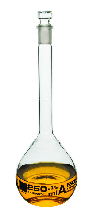 Flasks Volumetric with Hollow Stopper Class - A, cap. 5000ml, Hex. Hollow Stopper, borosilicate glass, White Printing, Each