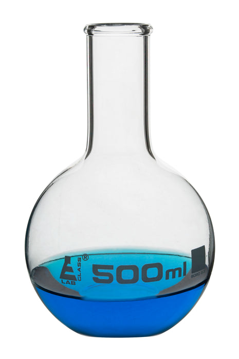 This 500ml flat-bottom Florence boiling flask is made of heavy-duty borosilicate glass, featuring a long neck but no stopper. Its thick-walled design makes it ideal for handling liquids at different temperatures. The flask's flat bottom, narrow neck, and beaded rim ensure easy use in any laboratory setting. Autoclavable and offering superior chemical durability, this flask can withstand high temperatures and thermal shocks due to its low temperature gradient. Eisco Labs' borosilicate glass has the following heat tolerances: strain point -515°C, annealing point 565°C, and softening point 820°C. At Eisco Labs, we proudly manufacture our own products using state-of-the-art equipment and adhering to the highest standards of quality control. Each product is carefully designed by a team of laboratory professionals and experienced engineers with quality and durability in mind. We use only the highest-grade raw materials and follow international quality standards to ensure that our products can withstand even the toughest laboratory environments.
