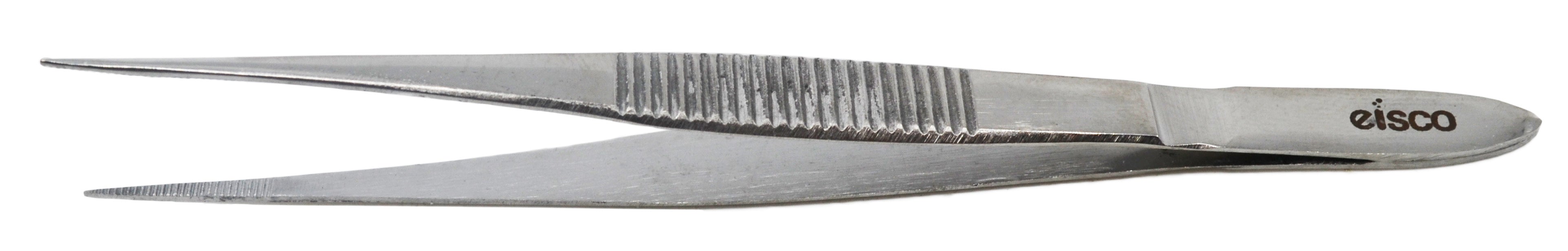 Rustproof, anti-magnetic stainless steel tweezers with a pointed end and serrated point which make it easy to grip items.Primarily used for microscopy applications, the forceps measure 4.5" long and 0.3" wide. Forceps measure 10.5mm when fully opened.Designed for use in professional laboratories, but is an ideal choice for science classrooms and household use.
