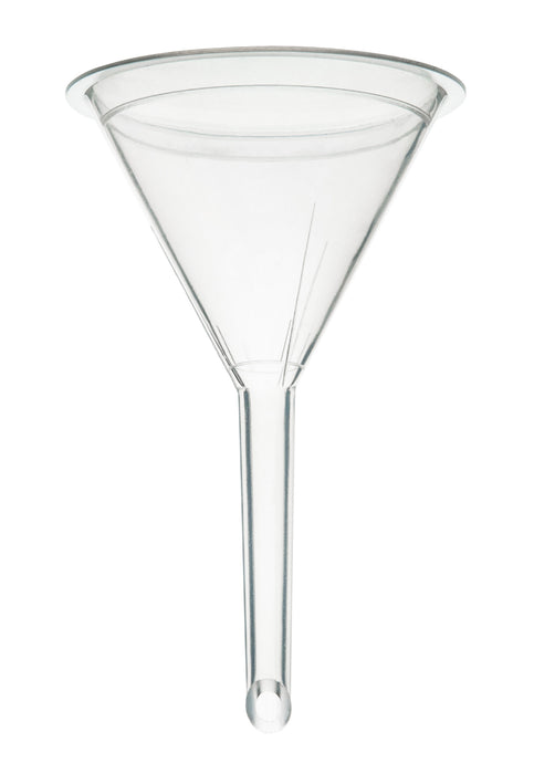 Industrial quality filter funnel made ofpolypropyleneplastic. Excellent for separating solids from liquids, as well as for easier transfers of liquids to narrow mouthed containers. Funnel measures 3.7" in total length and 2" in diameter. Stem is 1.9" long and has an outer diameter measuring 6.5mm. Designed for use in professional laboratories, but is an ideal choice for science classrooms and household use.Eisco Labs proudly manufactures its own products using state-of-the-art equipment, and following the highest standards of quality control.Each product is carefully designed by a team of laboratory professionals and experienced engineers with quality and durability in mind. They are manufactured with only the highest grade, raw materials and according to international quality standards to ensure that they can withstand use in even the toughest laboratory environments.
