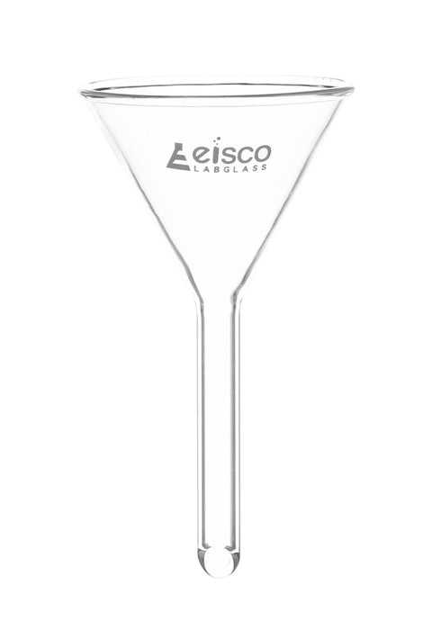 This high quality, borosilicate glass funnel filter is manufactured with a 60 degree angle. Features thick, uniform walls that allow for increased durability, ease of use and continual flow of liquid. It has a 25mm (1") diameter funnel and a 28mm stem length. Stem measures 6.3mm in diameter. Funnel measures 1.75" in total length. In addition to funnel, filter paper is required to correctly separate solids and liquids - Can be used with various sizes of paper. Autoclavable, with superior chemical durability. Low temperature gradient- can withstand high temperatures & thermal shocks. Eisco Labs Borosilicate glass has the following heat tolerances: Strain Point -515°C | Annealing Point 565°C | Softening Point 820°C.