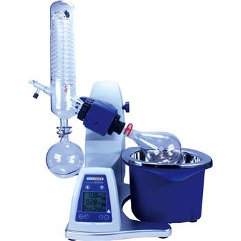 Specifications Easy to read large digital LCD displayLarge 5L heating bath with a temperature range of ambient to 180°CDetachable LCD operating panel for remote control purposesSpeed range from 20 to 280 rpmThe Scilogex RE100-Pro Rotary Evaporator fetaures a large to read large digital LCD screen displaying the temperature, rotation speed and timer. The display can be removed for remote control purposes. This system holds a number of patents including a unique condenser with a cooling surface of 1,500 cm² providing unparalled cooling. Our system features a large 5L water/oil heating bath and has a temperature range from ambient to 180°C.Easy to read large digital LCD display shows temperature, rotation speed and timerDetachable LCD operating panel for remote control purposesLarge 5L heating bath with a temperature range of ambient to 180°CPatented condenser (cooling surface 1,500 cm²) provides excellent coolingMotorized lift with safety automatic release of the evaporating flask to the top position in case of power failureSpeed range from 20 to 280 rpmTimer function for precise control processingChemical-resistant PTFE seals and patented pressure springs provide excellent sealingPC control and documentation of all parameters via USBPrecise temperature control and adjustable safety circuitQuick release connectors for easy flask removal2 YEAR MANUFACTURER WARRANTYSpeed range:20 - 280rpmTemperature range:Ambient - 180°CHeat control accuracy:± 1°CHeat output:1300WLift stroke:150mmTimer range:1 - 99 minsReversable motor:YesPower:1400WMotor type:DC brushlessDimensions:18.3L x 18W x 23H inchesWeight:33lbsVoltage, Hz:110V, 60Hz