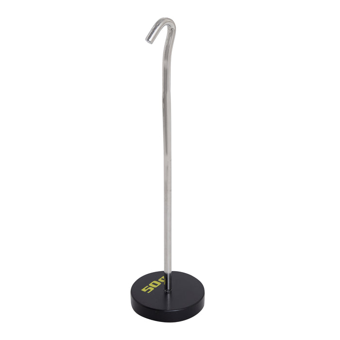 This 50g hanger features a stainless steel hook and weighs a total of 50 grams. It is designed for use with slotted masses up to 500 grams and measures 7.15 inches long and 1.75 inches wide at its widest point. This product is ideal for any school or home laboratory setting.