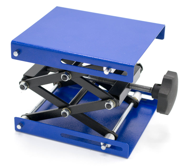 Strong, stable support for lab equipment is provided by this powder-coated steel laboratory scissor jack, which features a 6" x 5" area. The maximum height is 9 5/8", and the minimum is 2 1/2". With a heavy-duty design, it can handle a maximum stable load of 55lbs (25kg) and lifts to a maximum height of 10" (25cm). Please note that the flask is not included.