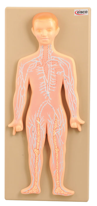The lymphatic system is an integral part of the immune system and it plays an important part in the body to defense against diseases. The model is designed with input from medical and educational professionals and custom molded using the highest quality nontoxic polymers and polyvinyl chloride (PVC) for durability. It is hand-painted by skilled artists to deliver the highest level of detail possible using vibrant, safe paint. Includes a key card identifying 9 labeled structures. Size on base: 18"L x 8"W x 1.7"H.
