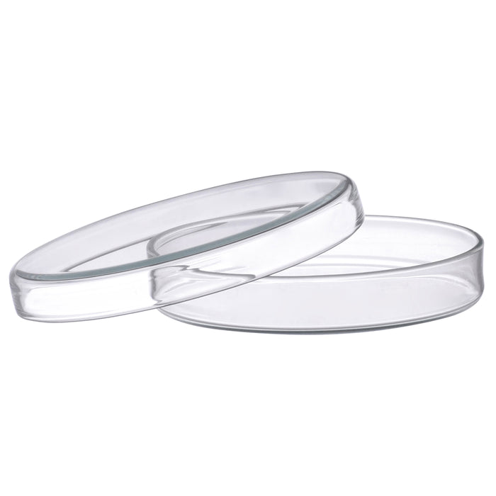 Petri Dish is made from high quality soda glass - easy to clean, built to last. Can withstand wet or dry sterilization for repeated use. Beaded edging allows for greater mechanical strength. Clear to provide easy visibility of cultures. Also great for using in the temporary storage of liquid, granules, powder, and for small specimens. Dish measures 100mm outer diameter x 20mm tall.