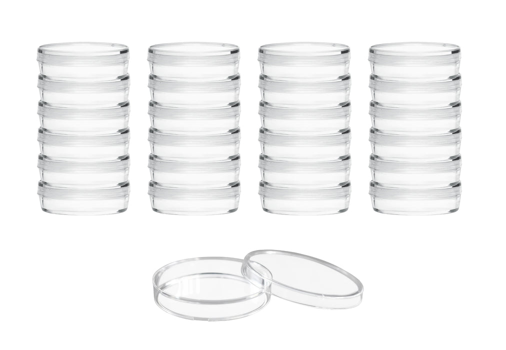 Pack of 25 disposable petri dishes made of high quality, transparent polystyrene plastic. Sterile. Triple vented lid to allow for airflow and discourage condensation build-up. Ideal for applications requiring better gaseous exchange or evaporation. Petri dish is packed individually in polyethylene bags and sterilized by radiation. Non-toxic, multifunctional and ready to use. Excellent for general laboratory applications, including cell culturing, plant germination, precipitate drying and solvent evaporation, home or classroom science experiments, crafting, small storage solutions and more.Dish measures 35mm (1.4") in diameter and 15mm (0.6") deep.