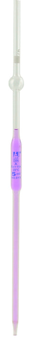 Pipette class 'B' 5ml, Borosilicate glass, bulb form, with safety bulb on upper stem, White, Each