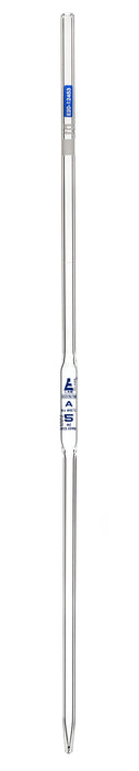 Volumetric pipette with a 5ml capacity. Color code: White. Eisco Labs volumetric pipettes feature color coding for easy volume identification. Made of high-quality Borosilicate 3.3 glass, and features a Class A tolerance of ±0.015ml, as per DIN ISO 648 standard. Pipette is calibrated for delivery. Single, white graduation line, and blue specifications for optimal clarity against clear liquids. Pipette measures 13.25" in length and body measures 6mm in diameter. Bulb measures 12mm in diameter. Autoclavable, with superior chemical durability. Low temperature gradient- can withstand high temperatures & thermal shocks. Eisco Labs Borosilicate glass has the following heat tolerances: Strain Point -515°C | Annealing Point 565°C | Softening Point 820°C.