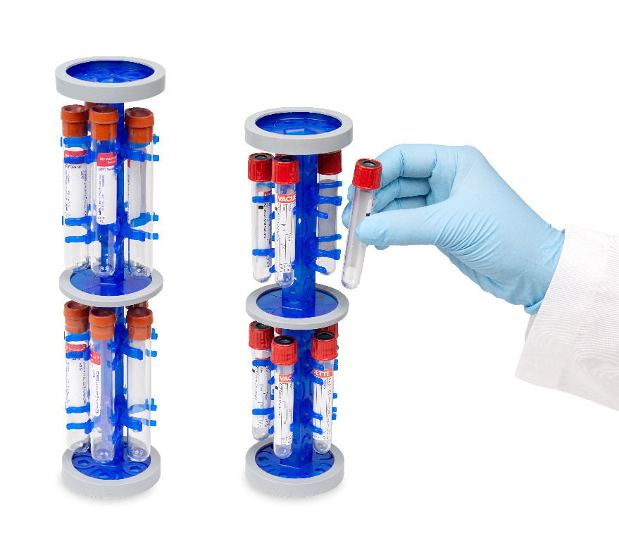 Efficient and practical solution for tube roller workflows., Expand workflow capacities, as each Tube Roller Rack accommodates 10 tubes, doubling or tripling the capacity of tube roller equipment. These Tube Roller Racks enable precise and efficient tube rolling because the tube holder axis is parallel to the roller axis, allowing pure horizontal rotation for controlled sample manipulation. The Tube Roller Rack slows the effective RPM of the tube, providing a slower mix (new RPM calculation = [Speed Value] * 0.26). Controlled, lower speed mitigates cell damage, reducing sample errors such as hemolysis., 04_BodyText: Available in two sizes to accommodate small and large clinical tube diameters. The large tube rack fits transport, conical bottom, blood collection, and culture tubes (10 ml), as well as standard 15 ml tubes up to 18 to 20 mm. The small tube rack fits transport, conical bottom, blood collection, and culture tubes 10 to 17 mm (3.5 to 7 ml). All racks feature silicone rings for smooth rotation and gentle contact with the roller., 05_BodyText: These versatile and durable racks allow users to organize samples pre- and post-mixing. They can be used as a storage tube rack for upright storgae or submersion in an ice bath. The polypropylene construction is wear-resistant and offers reliable sterilzation through autoclaving., 02_BulletPoint: Large batch processing reduces the number of roller cycles required for lab procedures | Handle more without the need to invest in multiple machines to process the same amount of tubes | Additional capacity is especially helpful with limited incubator capacity | Fits most standard and larger size tube roller equipment models | Silicone rings for smooth rotation and gentle contact with roller | Small rack holding prongs diameter (at rest): 0.468 ±0.008" (1.2 ±0.02 cm) | Large rack holding prongs diameter (at rest): 0.59 ±0.01" (1.5 ±0.02 cm) | Autoclavable, Final SAP Desc Link: 37186256, SAP Description Status: Ready, Hole Ø: Ø 6.5 cm (2.54"), Efficient and practical solution for tube roller workflows., Expand workflow capacities, as each Tube Roller Rack accommodates 10 tubes, doubling or tripling the capacity of tube roller equipment. These Tube Roller Racks enable precise and efficient tube rolling because the tube holder axis is parallel to the roller axis, allowing pure horizontal rotation for controlled sample manipulation. The Tube Roller Rack slows the effective RPM of the tube, providing a slower mix (new RPM calculation = [Speed Value] * 0.26). Controlled, lower speed mitigates cell damage, reducing sample errors such as hemolysis., 04_BodyText: Available in two sizes to accommodate small and large clinical tube diameters. The large tube rack fits transport, conical bottom, blood collection, and culture tubes (10 ml), as well as standard 15 ml tubes up to 18 to 20 mm. The small tube rack fits transport, conical bottom, blood collection, and culture tubes 10 to 17 mm (3.5 to 7 ml). All racks feature silicone rings for smooth rotation and gentle contact with the roller., 05_BodyText: These versatile and durable racks allow users to organize samples pre- and post-mixing. They can be used as a storage tube rack for upright storgae or submersion in an ice bath. The polypropylene construction is wear-resistant and offers reliable sterilzation through autoclaving., 02_BulletPoint: Large batch processing reduces the number of roller cycles required for lab procedures | Handle more without the need to invest in multiple machines to process the same amount of tubes | Additional capacity is especially helpful with limited incubator capacity | Fits most standard and larger size tube roller equipment models | Silicone rings for smooth rotation and gentle contact with roller | Small rack holding prongs diameter (at rest): 0.468 ±0.008" (1.2 ±0.02 cm) | Large rack holding prongs diameter (at rest): 0.59 ±0.01" (1.5 ±0.02 cm) | Autoclavable, Color: Blue, Tube roller rack, for small tubes, Length: 23.9 cm (9.4"), Material: PP, Cat. No.: 77531-578, Final SAP Desc Link: 37186256, SAP Description Status: Ready, Hole Ø: Ø 6.5 cm (2.54"), Efficient and practical solution for tube roller workflows., Expand workflow capacities, as each Tube Roller Rack accommodates 10 tubes, doubling or tripling the capacity of tube roller equipment. These Tube Roller Racks enable precise and efficient tube rolling because the tube holder axis is parallel to the roller axis, allowing pure horizontal rotation for controlled sample manipulation. The Tube Roller Rack slows the effective RPM of the tube, providing a slower mix (new RPM calculation = [Speed Value] * 0.26). Controlled, lower speed mitigates cell damage, reducing sample errors such as hemolysis., 04_BodyText: Available in two sizes to accommodate small and large clinical tube diameters. The large tube rack fits transport, conical bottom, blood collection, and culture tubes (10 ml), as well as standard 15 ml tubes up to 18 to 20 mm. The small tube rack fits transport, conical bottom, blood collection, and culture tubes 10 to 17 mm (3.5 to 7 ml). All racks feature silicone rings for smooth rotation and gentle contact with the roller., 05_BodyText: These versatile and durable racks allow users to organize samples pre- and post-mixing. They can be used as a storage tube rack for upright storgae or submersion in an ice bath. The polypropylene construction is wear-resistant and offers reliable sterilzation through autoclaving., 02_BulletPoint: Large batch processing reduces the number of roller cycles required for lab procedures | Handle more without the need to invest in multiple machines to process the same amount of tubes | Additional capacity is especially helpful with limited incubator capacity | Fits most standard and larger size tube roller equipment models | Silicone rings for smooth rotation and gentle contact with roller | Small rack holding prongs diameter (at rest): 0.468 ±0.008" (1.2 ±0.02 cm) | La