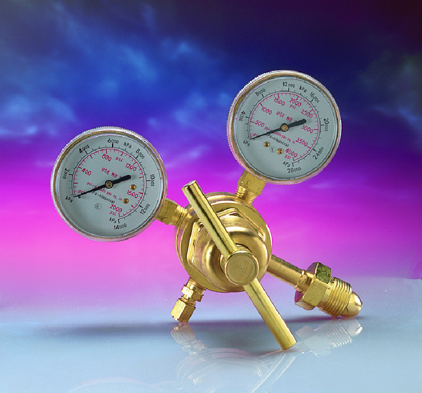 Here is the rephrased and corrected product description: The Model GP 8700 is a single-stage high-pressure regulator designed to operate on high-pressure cylinders. It features a one-piece encapsulated valve design, ergonomic knob for improved grip, dual-scale gauges (psi/bar), and 2½” brass gauges with high pressure/low volume capacity. Certifications: UL; CGA E-4 We offer two models: **Ultra-High Delivery Gas Regulator, Cat. No.: 55850-300** * Pressure range: 3.3 psig to 100 psig * Delivery pressure gauge: 3000 psig * Inlet connection: CGA 350 * Gas: Hydrogen/methane * Delivery range: 0 to 1500 psig * Supply pressure gauge: 4000 PSIG * Outlet size: 1/4” SS tube fitting * Maximum inlet pressure: 3000 PSIG **Ultra-High Delivery Gas Regulator, Cat. No.: 55850-305** * Pressure range: 3.3 psig to 100 psig * Delivery pressure gauge: 3000 psig * Inlet connection: CGA 580 * Gas: Argon, helium, nitrogen * Delivery range: 0 to 1500 psig * Supply pressure gauge: 4000 PSIG * Outlet size: 1/4” SS tube fitting * Maximum inlet pressure: 3000 PSIG