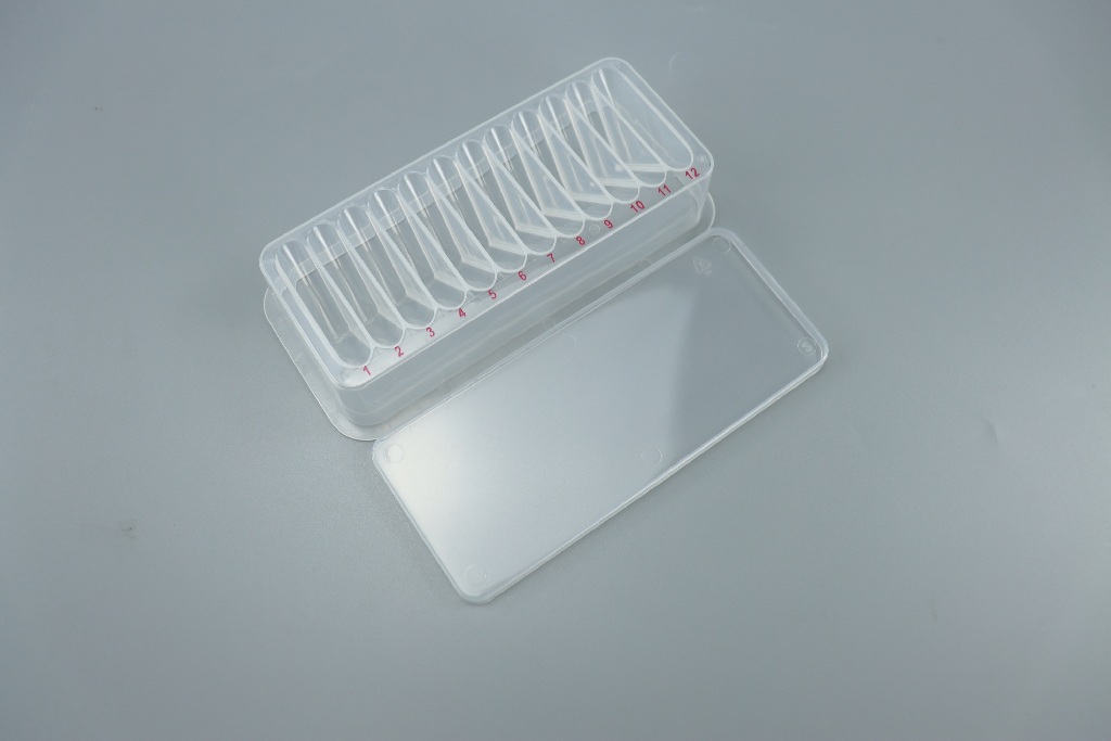 Sterility: Sterile, These 12-channel reservoirs are made from high-quality, chemical resistant PP. Designed for serial dilutions or pipetting individual reagents using up to 12-channel pipetters., 12-channel reagent reservoirs feature twelve 3 ml compartments, designed with V-shaped channels to maximize complete sample withdrawal. They are ideal for all liquid handling applications., 02_BulletPoint: V-shaped basins facilitate easy withdrawal of sample solutions | Each channel holds up to 3 ml of solution and is individually numbered | Includes a tight-fitting lid | Individually wrapped packaging | Non-sterile or sterilized by irradiation, SAL 10⁻⁶ (ISO 11137) | Lot-certified, non-pyrogenic, DNase- and RNase-free, 08_Certifications: ISO 13485 and ISO 9001., Capacity: 36 ml, Color: Clear, 12-channel reagent reservoir, with lid, Material: Polypropylene, Environmentally Preferable: Low Manufacturing Impact, Environmental Certification: ISO 14001/Certificate No.: 04923E00243R0M, Packed: Individually wrapped: 1/bag, 20/pack, 240/case, Cat. No.: 77575-258, Final SAP Desc Link: 20597309, SAP Description Status: Ready, Sterility: Non sterile, These 12-channel reservoirs are made from high-quality, chemical resistant PP. Designed for serial dilutions or pipetting individual reagents using up to 12-channel pipetters., 12-channel reagent reservoirs feature twelve 3 ml compartments, designed with V-shaped channels to maximize complete sample withdrawal. They are ideal for all liquid handling applications., 02_BulletPoint: V-shaped basins facilitate easy withdrawal of sample solutions | Each channel holds up to 3 ml of solution and is individually numbered | Includes a tight-fitting lid | Individually wrapped packaging | Non-sterile or sterilized by irradiation, SAL 10⁻⁶ (ISO 11137) | Lot-certified, non-pyrogenic, DNase- and RNase-free, 08_Certifications: ISO 13485 and ISO 9001., Capacity: 36 ml, Color: Clear, 12-channel reagent reservoir, with lid, Material: Polypropylene, Environmentally Preferable: Low Manufacturing Impact, Environmental Certification: ISO 14001/Certificate No.: 04923E00243R0M, Packed: Individually wrapped: 1/bag, 20/pack, 240/case, Cat. No.: 77575-244, Final SAP Desc Link: 20597309, SAP Description Status: Ready, Sterility: Sterile, These 12-channel reservoirs are made from high-quality, chemical resistant PP. Designed for serial dilutions or pipetting individual reagents using up to 12-channel pipetters., 12-channel reagent reservoirs feature twelve 3 ml compartments, designed with V-shaped channels to maximize complete sample withdrawal. They are ideal for all liquid handling applications., 02_BulletPoint: V-shaped basins facilitate easy withdrawal of sample solutions | Each channel holds up to 3 ml of solution and is individually numbered | Includes a tight-fitting lid | Individually wrapped packaging | Non-sterile or sterilized by irradiation, SAL 10⁻⁶ (ISO 11137) | Lot-certified, non-pyrogenic, DNase- and RNase-free, 08_Certifications: ISO 13485 and ISO 9001., Capacity: 36 ml, Color: Clear, 12-channel reagent reservoir, with lid, Material: Polypropylene, Environmentally Preferable: Low Manufacturing Impact, Environmental Certification: ISO 14001/Certificate No.: 04923E00243R0M, Packed: Individually wrapped: 1/bag, 50/case, Cat. No.: 77575-254, Final SAP Desc Link: 20597309, SAP Description Status: Ready, These 12-channel reservoirs are made from high-quality, chemical resistant PP. Designed for serial dilutions or pipetting individual reagents using up to 12-channel pipetters., 12-channel reagent reservoirs feature twelve 3 ml compartments, designed with V-shaped channels to maximize complete sample withdrawal. They are ideal for all liquid handling applications., 02_BulletPoint: V-shaped basins facilitate easy withdrawal of sample solutions | Each channel holds up to 3 ml of solution and is individually numbered | Includes a tight-fitting lid | Individually wrapped packaging | Non-sterile or sterilized by irradiation, SAL 10⁻⁶ (ISO 11137) | Lot-certified, non-pyrogenic, DNase- and RNase-free, 08_Certifications: ISO 13485 and ISO 9001., Final SAP Desc Link: 20597309, SAP Description Status: Ready, Sterility: Non sterile, These 12-channel reservoirs are made from high-quality, chemical resistant PP. Designed for serial dilutions or pipetting individual reagents using up to 12-channel pipetters., 12-channel reagent reservoirs feature twelve 3 ml compartments, designed with V-shaped channels to maximize complete sample withdrawal. They are ideal for all liquid handling applications., 02_BulletPoint: V-shaped basins facilitate easy withdrawal of sample solutions | Each channel holds up to 3 ml of solution and is individually numbered | Includes a tight-fitting lid | Individually wrapped packaging | Non-sterile or sterilized by irradiation, SAL 10⁻⁶ (ISO 11137) | Lot-certified, non-pyrogenic, DNase- and RNase-free, 08_Certifications: ISO 13485 and ISO 9001., Capacity: 36 ml, Color: Clear, 12-channel reagent reservoir, with lid, Material: Polypropylene, Environmentally Preferable: Low Manufacturing Impact, Environmental Certification: ISO 14001/Certificate No.: 04923E00243R0M, Packed: Individually wrapped: 1/bag,50/case, Cat. No.: 77575-240, Final SAP Desc Link: 20597309, SAP Description Status: Ready