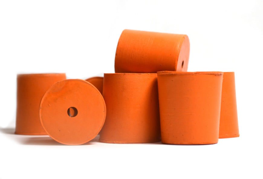 Here is the corrected text: Rubber stopper with 1 hole: 27mm at the bottom, 31mm at the top, and a length of 31mm. Eisco Labs Rubber Stopper, pack of 10. Please note that stoppers may vary slightly in size, although sizes are generally close.