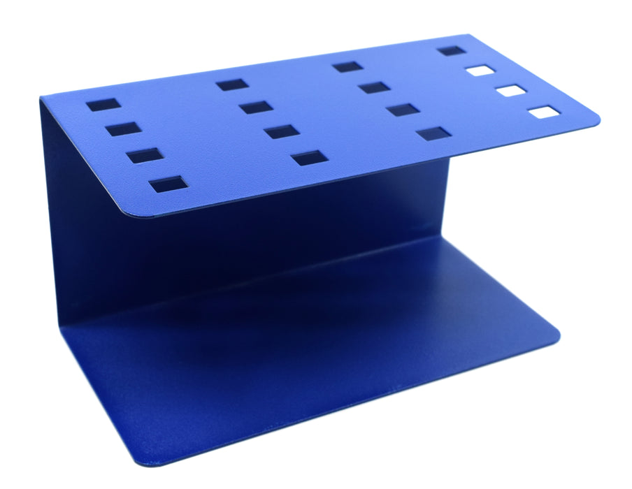 This stand is made of steel with a powder coating and can hold up to 16 scissors. It accommodates scissors up to 6 inches in length, making it convenient for both storage and use. The stand measures approximately 4.75 inches tall, 8.5 inches wide, and 4.5 inches long. Ideal for holding scissors while in use or storing them, this product is suitable for dissecting labs that commonly use scissors up to 6 inches long.