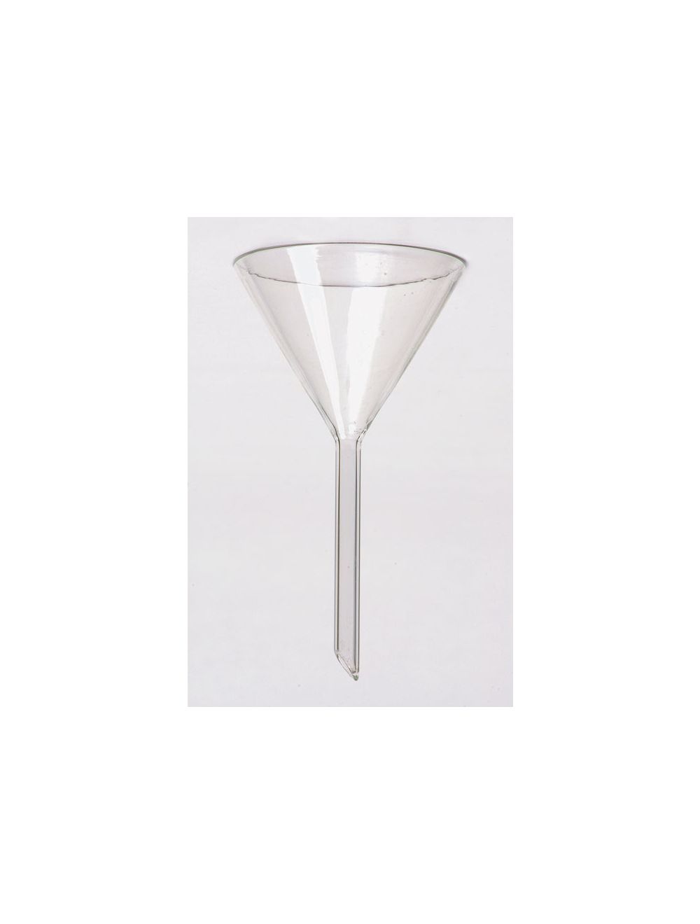 These borosilicate glass funnels feature a 60-degree cone angle, beaded tops, and long stems.