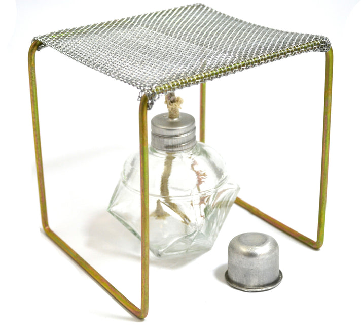 Alcohol burner and burner stand combination Burner stand is approximately 5"x5"x5" Basic alcohol burner and burner stand combinatio