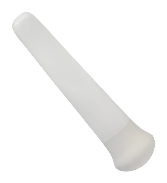 Replacement pestle, designed for use with Eisco Labs 1500ml - 1900ml Mortar & Pestle sets (CH0540F-CH0541G). Mortar is not included. Pestle is made of solid porcelain. Grinding surface of the rounded end of the pestle is unglazed for precise grinding and crushing. The heavy duty porcelain construction is resistant to chips and cracks. Pestle measures 9" in length, and the rounded grinding end measures 2.25" in diameter.