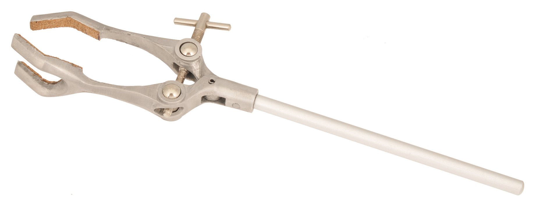 Cork-lined jaws accept articles up to 100 mm in diameter. The overall length is 27 cm.