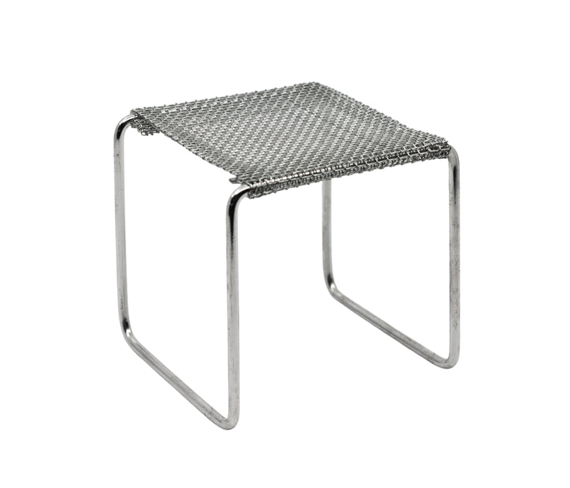 Made of chrome-plated steel wire with a heavy wire gauge top that evenly disperses heat. Designed to accommodate most alcohol burners. Size: 3.5"L x 3.5"W x 3.5"H.