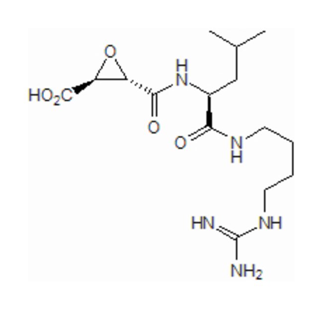 E 64 is a potent and irreversible cysteine protease inhibitor (IC50 values are 1.4, 2.5 and 4.1 nM for cathepsin K, L and S respectively. Also inhibits papain, calpain, cathepsin B and cathepsin H. Has no effect on serine proteases. Reduces HSC-3 tongue cancer cell invasion and induces oxidative stress and apoptosis in filarial parasites. Also inhibits autophagy-associated lysosomal degradation in vitro.