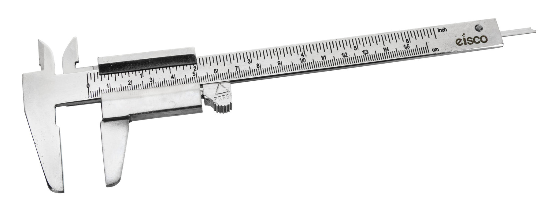 IME-type calipers are made of plated steel and feature a dual scale, providing measurements in both 0-15cm x 0.1mm and 6 x 1/128". The calipers come equipped with thumb movement, allowing for smooth and easy motion of the jaws. They are supplied in a box.