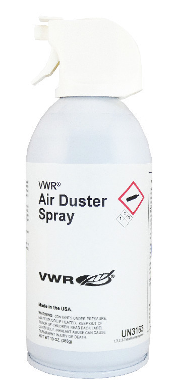 Volume: 284 g (10 oz.), Easily remove debris from hard-to-reach places., VWR® air duster spray removes dust, dirt, and debris from delicate or hard-to-reach places such as keyboards, copiers, lab equipment, fans, and more. The aerosol cleaning spray provides jets of cleaning power that is easy and safe to use., 02_BulletPoint: All-purpose sterilized cleaner is nonflammable | Remove dust, dirt, and microscopic debris from home and office equipment | Safe for the ozone with ultra-low global warming potential (GWP), 11_Delivery: Extension tube., VWR® Duster spray, Cat. No.: 76528-070, Easily remove debris from hard-to-reach places., VWR® air duster spray removes dust, dirt, and debris from delicate or hard-to-reach places such as keyboards, copiers, lab equipment, fans, and more. The aerosol cleaning spray provides jets of cleaning power that is easy and safe to use., 02_BulletPoint: All-purpose sterilized cleaner is nonflammable | Remove dust, dirt, and microscopic debris from home and office equipment | Safe for the ozone with ultra-low global warming potential (GWP), 11_Delivery: Extension tube.