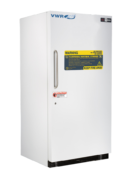 Temperature range: 1...10 °C, These VWR® laboratory cold storage units are designed for the safe storage of flammable substances., These flammable storage refrigerator/freezer combo units are designed to store and protect volatile substances in laboratory settings. These units meet the requirements of NFPA 45 and NFPA 30 for cold storage of flammable and combustible materials in unclassified laboratory locations. They utilize non-sparking and/or ATEX rated components to ensure an intrinsically safe interior for flammable materials in sealed containers., 04_BodyText: The standard line provides multi-functional features in a cost-effective design., 05_BodyText: Material: White powder coat., 02_BulletPoint: Mechanical thermostat | Keyed door lock | High density foam insulation, 08_Certifications: Units meet the requirements of NFPA 45 and NFPA 30 for cold storage of flammable and combustible materials in unclassified laboratory locations. UL/C-UL listed., 10_Ordering: Units come with a two year parts and labor warranty., Capacity: 850 L (30 cu.ft.), Standard series laboratory refrigerator/freezer combo flammable storage, 30 cu. ft., Cat. No.: 76580-140, Electrical: 115 V, 60 Hz, 6 A, ⅓ HP, Defrost: Cycle (Refrigerator) / Manual (Freezer), Door Type: 1 solid door, right hinged, Shelves/drawers: 3 adjustable shelves (refrigerator) / No shelves (freezer), Weight: 180 kg (396 lbs.), Exterior W×D×H: 908×902×1842 mm (35¾×35½×72½"), Interior W×D×H: 737×565×305 mm (29×22¼×12") Freezer / 813×572×1283 mm (32×22½×50½") Refrigerator, Cat. No.: 76580-140, Final SAP Desc Link: 6058295, SAP Description Status: Ready, These VWR® laboratory cold storage units are designed for the safe storage of flammable substances., These flammable storage refrigerator/freezer combo units are designed to store and protect volatile substances in laboratory settings. These units meet the requirements of NFPA 45 and NFPA 30 for cold storage of flammable and combustible materials in unclassified laboratory locations. They utilize non-sparking and/or ATEX rated components to ensure an intrinsically safe interior for flammable materials in sealed containers., 04_BodyText: The standard line provides multi-functional features in a cost-effective design., 05_BodyText: Material: White powder coat., 02_BulletPoint: Mechanical thermostat | Keyed door lock | High density foam insulation, 08_Certifications: Units meet the requirements of NFPA 45 and NFPA 30 for cold storage of flammable and combustible materials in unclassified laboratory locations. UL/C-UL listed., 10_Ordering: Units come with a two year parts and labor warranty., Final SAP Desc Link: 6058295, SAP Description Status: Ready