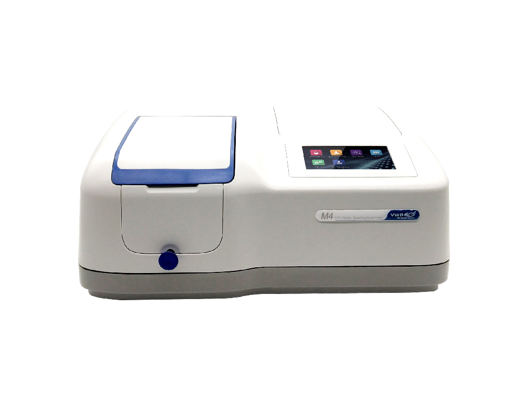 The M4 single split-beam spectrophotometer, with flashing xenon lamp, is an easy to use, highly reliable and accurate product., Measure absorbance and transmission at any defined wavelength, generates a graph and searches for peaks and valleys, also analyses the graph via built-in methods., 04_BodyText: The application can be extended to luminosity determination, multiple wavelength measurement, quantitative analysis, dynamic determination, DNA/protein determination and spectral measurements., 02_BulletPoint: Single split-beam design for sample and blank variability that can be monitored at the same time | Xenon flash lamp with a very strong energy in the UV and visible range | Connects to a computer based on Windows® through various interfaces, 11_Delivery: Supplied with a user manual, 10 mm quartz cuvette, 10 mm glass cuvette, fuse, power cable and dust cover., Model: M4, Light Source: Flashing xenon lamp, The M4 single split-beam spectrophotometer, with flashing xenon lamp, is an easy to use, highly reliable and accurate product., Measure absorbance and transmission at any defined wavelength, generates a graph and searches for peaks and valleys, also analyses the graph via built-in methods., 04_BodyText: The application can be extended to luminosity determination, multiple wavelength measurement, quantitative analysis, dynamic determination, DNA/protein determination and spectral measurements., 02_BulletPoint: Single split-beam design for sample and blank variability that can be monitored at the same time | Xenon flash lamp with a very strong energy in the UV and visible range | Connects to a computer based on Windows® through various interfaces, 11_Delivery: Supplied with a user manual, 10 mm quartz cuvette, 10 mm glass cuvette, fuse, power cable and dust cover., UV/Visible spectrophotometer, W×D×H: 456×360×185 mm, Wavelength Range: 190 - 1100 nm, Output: USB; serial port; Bluetooth® (optional), Display: 5" colour touch screen, Languages: 6 can be switched: English, German, French, Spanish, Portuguese, simplified Chinese, Russian, Spectral bandwidth: 2 nm, Weight: 10.5 kg, Cat. No.: 76520-716